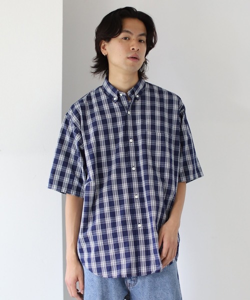 キレイめなチェック柄が魅力 インディゴ糸を使用したブロードチェックのイージーフィットのボタンダウンシャツ。ただビッグシルエットなだけでなく、首回りは極力ボディに沿う様に設定しメリハリのあるシルエットに仕上げました。肘が隠れるくらいのルーズな袖丈もポイント。きれい目な王道チェック柄はどんなスタイルにも合わせやすく、着回しの利くアイテムです。 Model:H179cm W57kg Size:M ※商品の色味は白背景商品単体で撮影した画像をご参照ください。 ※屋外撮影による光の当たり具合やパソコンなどの閲覧環境によって、実際の色味と異なって見える場合がございます。予めご了承ください。
