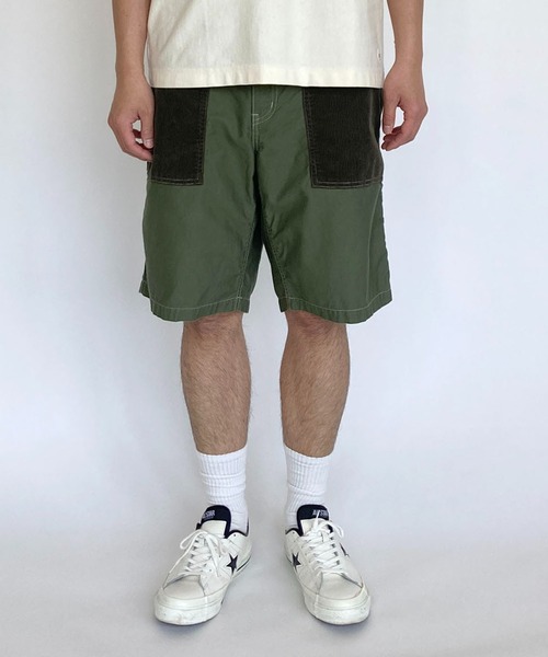 【隠れた名品】ついに残り1点...! 《完売目前》見つけた“今”がチャンスです。 コーデュロイ、モールスキン、リップストップと3種類の生地のそれぞれの良さを活かしてデザインしたショーツです。 メインとなる素材はタフな素材のモールスキンなので長く愛用して頂けます。 シンプルになる夏のコーディネートの主役となるショーツです。 耐久性のある素材なので、経年変化が楽しみ。 特にコーデュロイの表情が変化してくるので穿けば穿くほど愛着が沸きそうです。