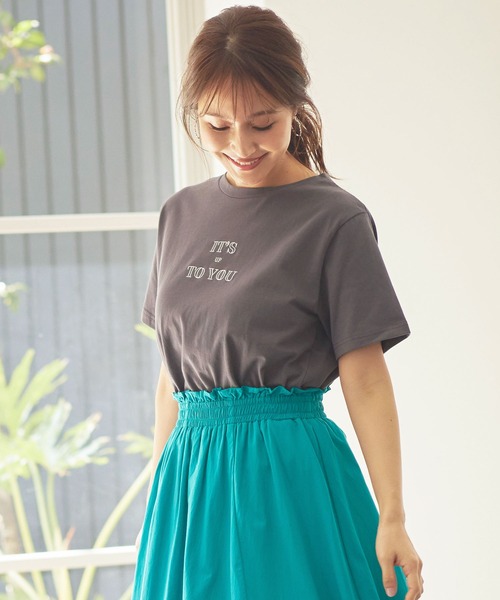 刺繍とプリントの2タイプから選べる旬なロゴTのお目見え。何にでも合わせやすいシンプルなデザイン&インでもアウトでも着やすい丈感が◎。1枚でサマになる万能アイテムです。ベーシックなクルーネックなのでシャツやカーディガンなど羽織りアイテムとも合わせやすいトップスです。 【素材・サイズ感】素肌に着ても肌あたりのいい綿100%。体のラインを拾わないボクシーなシルエットが抜け感をプラス。ご自宅でのお手入れも簡単で、デイリーユースにぴったり。