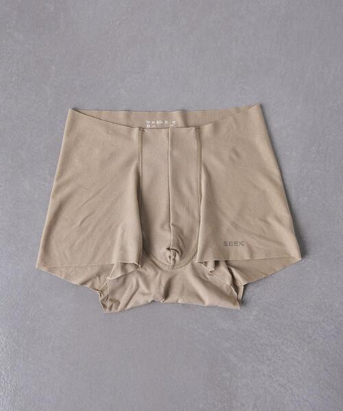 ウエストゴムをなくした画期的なスタイルのボクサーパンツ。 ウエストや裾が切りっぱなしで生地のかさばりや縫い目が少なく肌当たりがよい着用感です。 シンプルなデザインで、下着のラインがうつりくくパンツスタイルにもおすすめです。 参考サイズ Mサイズ:ウエスト(腹囲) 76~84cm Lサイズ:ウエスト(腹囲) 84~94cm <SEEK(シーク)> 2003年に誕生した<SEEK>はアンダーウェアの役割を考え、日常の動作をストレス無く行うための設計と縫製にこだわるジャパンメイドのブランド。気温や湿度の変化に対応するために、高級超長綿などを混紡した高機能素材を使っています。袖口・襟・裾をカットオフにすることで縫い目が少なくフラットになり下着がシルエットに響かないTシャツをはじめ、両脇の縫い目を無くし体の動きにフィットしたシルエットのものや、汗を吸収しやすい素材を使用したもの、表面に撥水加工を施すことで表面に滲ませること無くシャツの汗染みを防ぐものなど、多機能なアンダーウェアを作っています。 店舗へお問い合わせの際は、全国のUNITED ARROWS各店舗まで下記の品名/品番をお申し付けください。 品名:▲SEEK C/F AIRZ BOXER 品番:13395991128