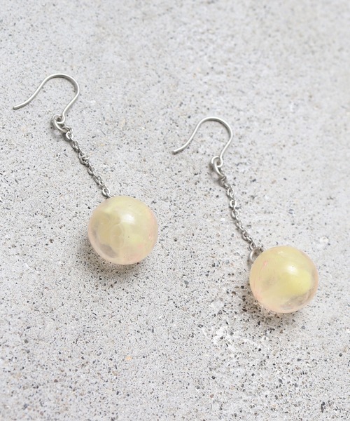 春夏らしい樹脂アクセサリーシリーズが登場今回はマーブル模様の樹脂に細かく砕いた貝を入れポイントに。柔らかな色合いとクリアな素材が揺れる、夏らしいアイテムです。お取り扱い上の注意アクセサリーのご使用にあたりましては下記の点にご注意ください。●アレルギー体質の方や体調が低下している方などかぶれることがあります。肌に異常を感じたときはご使用をお止めいただき専門医にご相談ください。●アクセサリーをつけたままでの入浴や水仕事は厳禁です。●メッキ加工製品は雨、水、汗、湿気などが原因で変色することがある為、ご使用は柔らかい布で水分や汚れを拭き取ってください。保管は乾燥させた状態で空気に触れないようにチャック袋などで密閉することをお薦めいたします。●アクセサリーはこわれやすいものです。取り扱いに注意していただき、大切にご使用いただける様お願い申し上げます。《2021 summer》bulle de savon(ビュルデサボン)BRAND CONCEPT女性、誰もが ふっと子供の頃を思い出し 少女のような気持ちに戻れる服。 bulle de savon =シャボン玉の事 石鹸の泡とか、においなど、 懐かしい感じ。設立年月日 1994年8月※モデルの着用画像は光の関係で商品の色味が若干異なります。※取り扱いの注意については取り扱い表示をよくご確認の上、着用をお願いいたします。