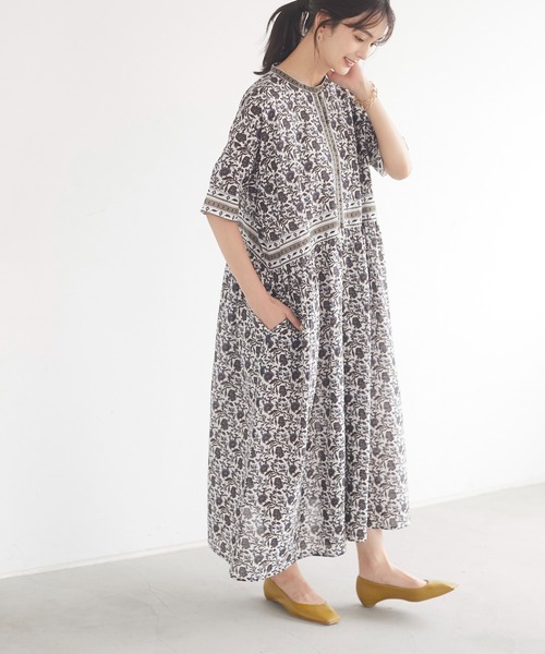 レトロなパネル柄が目を惹くロングワンピース前を開けて羽織としても使え着回し力抜群の1着通気性の良いインドコットンを使用した着心地のいいワンピースを人気の総柄デザインで落とし込んだ1着。多色づかいですがトーンを纏めているのでうるさくなく、大人女性にも着やすく仕立てています。元々生地の段階で、生地フチがライン状のプリント、生地内側が花柄プリントになっており、縫製はライン部分がフチになるよう、生かした裁断をしています。わざわざ上からラインデザインを縫い合わせたりしていないので、生地の厚み・もたつきがありません。下前もついているので胸元の心配がありません。柄に合わせてボタンもアンティークボタンを使用し細部までこだわった1着です。◆Item Review・生地の厚さ :薄手・透け感 :ややあり・光沢感 :なし・裏地 :なし◆How to Care ・色が濃いアイテムは白色の物とわけてお洗濯ください。・つけ置きでの洗濯はお控えください。・色の濃い物は雨など濡れた際にお持ちの衣類や小物に色移りする場合がありますのでご注意ください。・他のお洋服とわけて、もみ洗いは避けてください。・飾り部分へのアイロンはお控えください。◆Product Information・この製品はインド製の素材を使用し、インドで縫製されたものです。・他の製品では味わえない雰囲気があり、1点1点の外観や風合いが微妙に異なります。・生地にはネップや織りムラ等があります。・製品ごとに寸法、色、風合い等に差が生じることがあります。 ̄ ̄ ̄ ̄ ̄ ̄ ̄ ̄ ̄ ̄ ̄ ̄ ̄ ̄ ̄ ̄ ̄ ̄ ̄● CRAFT STANDARD BOUTIQUE ●(クラフトスタンダードブティック)丁寧な作りのアイテム、一生飽きないアイテム、毎日の気分を変えるアイテム。それらをキュレーションしたお店が『クラフトスタンダード ブティック』です。▼商品のお気に入り登録がおすすめです ▼商品ページ内のハートマークをクリック。完売時の再入荷や、最後の1点の通知、コーディネート画像がアップされたとき、お得なお値下げの際の通知を受ける事ができます。【お知らせ】ページでも通知が確認できます。 ̄ ̄ ̄ ̄ ̄ ̄ ̄ ̄ ̄ ̄ ̄ ̄ ̄ ̄ ̄ ̄ ̄ ̄ ̄