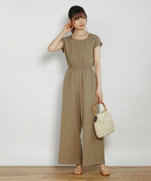 背中のリボンとナチュラルな風合いが女性らしいオールインワン。 フロントはシンプルですが、バックの深めに開いた衿ぐりが目を惹きます。 ゆったりとしたシルエットで体型カバーできるのも嬉しいポイントです。 フレンチスリーブデザインで肩が出にくく華奢見え効果も◎ 1枚でサラッと着こなすのはもちろん、 シアートップスと合わせたトレンドライクなスタイルもおすすめです。 ウエストはゴム仕様でリラクシーな着心地です。 パンツ部分には裏地が付いているので透け感を気にせず、安心して着ていただけます。 リネンレーヨン生地を使用した柔らかな肌触り。 程よいハリ感がきれいなシルエットをキープします。 - - - - - - - - - - - - - - - - - - - - - - - - - - - - - - - - - 透け感:なし 裏地:なし(パンツ部分のみあり) 伸縮性:なし 光沢感:なし - - - - - - - - - - - - - - - - - - - - - - - - - - - - - - - - -