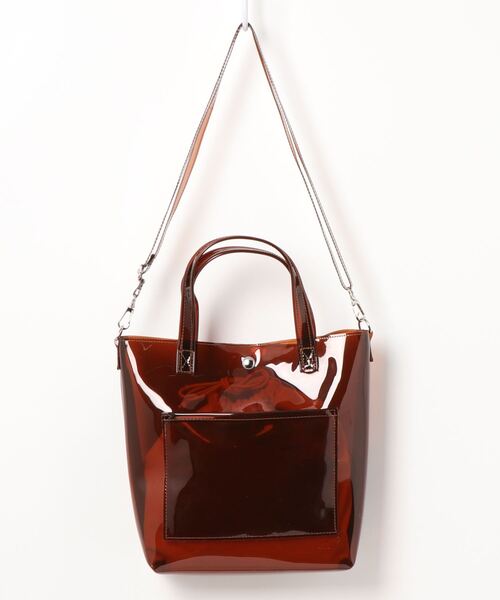 クリア素材が涼しげな印象のトートバッグ。 フロントには便利なポケットを備え、セパレート可能な巾着タイプのインバッグ付き。 簡単に着脱出来るショルダーベルトが付属しているので、気分やスタイリングに合わせて2WAYの持ち方を楽しむことが出来ます。