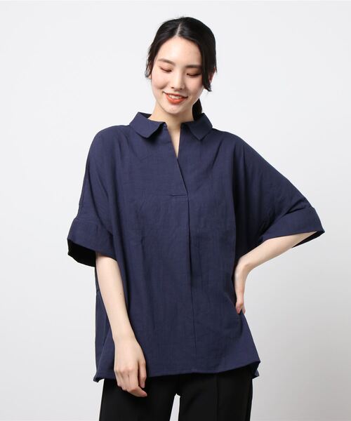 胸元の空き具合がエレガントなスキッパーのシャツ。バックタックが軽やかで動きのあるシルエットをメイクします。抜け感のあるデザインの袖はこれからの時季におすすめ。シンプルな無地カラーで幅広い着こなしが楽しめる、ワードローブにおさえておきたい1着です。