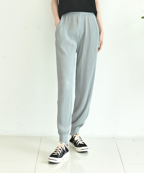 大人気プリーツパンツにジョガーデザインが登場!動くたびにきれいに揺れる微光沢でセミマットなキレイめリンクルフリー素材を使用し楽な着心地でリラックスに着れるデイリーボトムス。トレンド感のあるジョガーパンツをゆったりシルエットでリラクシーで大人っぽく着られるように仕上げた1枚です。ストンと落ちるキレイなゆるシルエットと裾のシャーリングデザインがきゅっと足元をキレイに見せてくれて美脚効果も◎ウエストはゴム仕様でラクラク。サイドポケット付きで実用性もばっちり。ほどよいゆとりがありながら大人っぽく着こなせるすっきりとしたシルエットでワイドすぎずタイトすぎず脚のラインを綺麗に見せてくれる絶妙なサイズ感がお気に入りになること間違いなし!お出掛けやワンマイルウェアとしてはもちろんカジュアルでリラックスして着れるからおうち時間も快適に可愛く過ごせるホームウェアとしても◎Tシャツはもちろんシャツやブラウスと合わせるのもオススメ。どんなトップスとも合わせやすいデザインがパンツスタイルを一気にクラスアップするプリーツジョガーパンツです。ベージュ、グレー、チャコールグレー、ブルー、ブラック(黒)の5色展開。【me+em select (ミームセレクト) ZOZOTOWN お買い物ガイド】▼商品をお気に入り登録▼完売商品の再入荷やラスト1点の通知、セール開始時にお知らせ!▼"me+em select (ミームセレクト) "をお気に入りブランドに登録▼新商品や再入荷など、ブランド最新情報をいち早くお知らせ!是非、ご活用いただきお買い物をお楽しみください◎■他のキャンペーンにより、期間中に価格が変動する場合があります。■セールは予告なく終了させていただく場合もあります。■ご覧のモニター環境や撮影環境により実際の商品と多少色味が異なって見える場合がございます。ご理解の程よろしくお願いいたします。