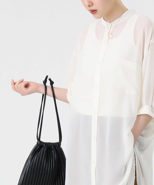 トレンドのシアー素材を使用したゆったりシルエットのブラウス。 ルーズに羽織るだけで今年らしい着こなしに。 シンプルなデザインで、幅広いコーディネートに活用できます。