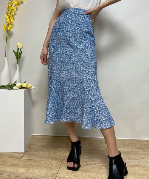 フェミニンな小花柄とマーメイドシルエットがオトナカジュアルなスタイルを叶えるスカートが登場!さらっと着心地の良いレーヨン素材を使用したとろみと落ち感がある肌触りと着心地良いアイテム。ウエスト周りのスッキリしたデザインと切替のマーメイドシルエットがメリハリあるスタイリングに。女性らしさをメイクしてくれる優秀スカートです◎体に程よく沿いながら裾に向けて広がるシルエットで歩くたびにひらひら動くドレープがコーディネートを上品に仕上げてくれます。オトナっぽく着られるミモレ丈でサイドファスナー&後ろウエストゴム仕様でフィット感が安定し膝上までの裏地付きが嬉しいポイント。Tシャツはもちろんパフスリーブのブラウスや袖コンシャストップスを合わせるとトレンド感もアップ!オーバーサイズなスウェットを合わせてカジュアルダウンしてもオススメ。スニーカーを合わせてカジュアルなスタイルやミュールやサンダルを合わせてフェミニンなスタイルにも◎きれいなシルエットとかわいい花柄がお気に入りになること間違いなしのマーメイドスカートです!■ Colorネイビー、ブルー、パープル(紫)の3色展開。【me+em select (ミームセレクト) ZOZOTOWN お買い物ガイド】▼商品をお気に入り登録▼完売商品の再入荷やラスト1点の通知、セール開始時にお知らせ!▼"me+em select (ミームセレクト) "をお気に入りブランドに登録▼新商品や再入荷など、ブランド最新情報をいち早くお知らせ!是非、ご活用いただきお買い物をお楽しみください◎■他のキャンペーンにより、期間中に価格が変動する場合があります。■セールは予告なく終了させていただく場合もあります。■ご覧のモニター環境や撮影環境により実際の商品と多少色味が異なって見える場合がございます。ご理解の程よろしくお願いいたします。