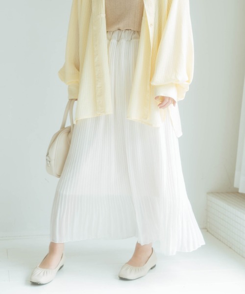 ♥scene♥ 【カフェ巡り】 TIME:6/5(土)pm13:00 一目惚れして買ったお気に入りの服を着て とくべつかわいくおめかしをする 今日はほっこりカフェ巡り 窓際に差し込む日差しと ティースプーンの音色 エスプレッソの似合わない きみのあまい笑顔がずるい ▼point ふんわりしたシアー生地が夏っぽい、柔らかい肌触りの良い柄アソートプリーツスカート。 ウエスト周りがゴムなので、着心地抜群です ◎ 歩く度にひらひらした揺れ感が愛らしいデザイン。 Tシャツやブラウス、ノーカラーシャツなど、様々なトップスに合う万能アイテムです♡ 全て裏地付きで、安心して着用できます。 ▼coordinate “ テレコ刺繍メロープルオーバー(NM1003) ”と合わせて きれいめガーリーに着こなしたり、 “ フリル衿ピンタックブラウス(NM1013) ”と合わせて フェミニンスタイルにしても ◎ ▼fabric ふんわり広がるシアー生地。 ウエスト周りがゴムなのでストレスフリー ◎ ------------------------------- 透け感:あり 裏地:あり 生地の厚さ:薄手 伸縮性:あり 光沢感:なし ------------------------------- ▼スタッフが着用してみました! 身長:156cm 普段着用サイズ:M 今回着用サイズ F 【着用感】 裏地付きで透ける心配もなく、安心して着用できます。 私が着用して膝下位なので、低身長の方でも着用できる長さになっています。 -nemneブランドコンセプト- 古着女子プロデュースブランド【nemne】 "背伸びはしない ありのままでのびのびと きょうのわたしが きのうのわたしのおきにいりになるように とっておきのねんね" ※サイト上のカラー名と、お届け商品に記載されているカラー名が異なる場合がございます。 ※ご覧のモニター環境により、画像の色味と多少異なる場合がございます。 ※ご注文いただいた予約商品のお届け時期の確認は、注文履歴ページより行えます。 ★《お気に入り登録》でお得な情報がいっぱい★ ・「商品のお気に入り登録」で再入荷通知や、ラストの通知、セール通知も受け取ることができます。 ・「ブランドのお気に入り登録」で新商品や再入荷など、お得な情報を受け取ることができます!