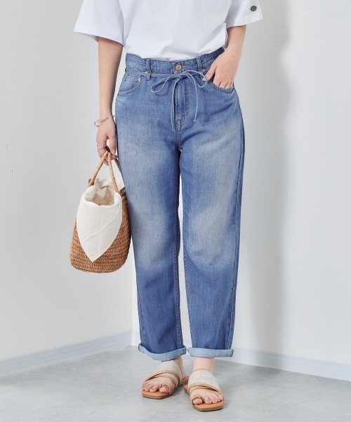 定番のデニムシリーズの新商品がでました!ウエストはその時のシーンにあわせて調節可能です!Tシャツやブラウスなどトップスを選ばずに着用していただけるので、着回しにもぴったりです◎※照明や天候により実際の色味と異なって見える場合がございます。ご了承くださいませ。