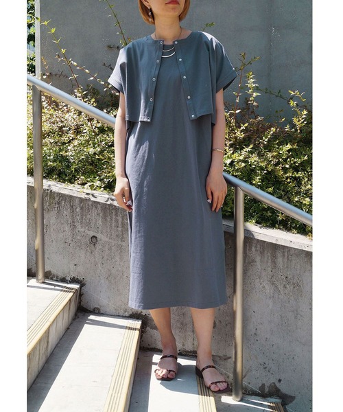 同素材のケープトップス×ナローワンピースセット。ゆるすぎないシルエットが、オンオフ着れて◎。トップスは、前後・ドットボタンを開けて羽織として着れる3WAYタイプなので、スタイリングの巾が広がるセットです。※屋外での撮影画像は、光の当たり具合で色味が違って見える場合があります。商品の色味は、スタジオ撮影の画像をご参照ください。