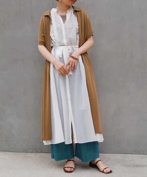 シャリ感+ドライ感が夏にピッタリな、半袖ロングカーディガン。ロング丈のワンピースとのレイヤードがオシャレに決まり、オススの1枚。カーディガンに珍しい、衿付きデザインがポイント。※屋外での撮影画像は、光の当たり具合で色味が違って見える場合があります。商品の色味は、スタジオ撮影の画像をご参照ください。