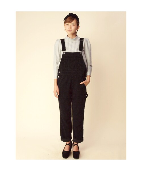 定番の便利なオーバーオール。16Wの細いコーデュロイ生地なので、カジュアルすぎずにコーデできます。