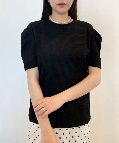 ボリューム袖が女性らしさ溢れる着回し抜群のくしゅくしゅトップス! ■point くしゅくしゅっとしたシワ感が魅力のプルオーバーは ふんわりとしたボリューム袖をプラスした事で 更に上品な女性らしいシルエットに♪ 伸縮性はもちろん!肌触りも良くサラッとした涼しげな着心地です。 いつものコーディネートに取り入れやすいベーシックなカラー展開が◎ 可愛いだけでなく、気になる二の腕もカバーしてくれる優秀アイテム。 アイロンがけが必要なく、お手入れが楽ちんなのも嬉しいポイントです♪ ■styling シンプルなデザインで着回し力抜群! マーメイドラインのスカートと合わせて、グッとフェミニンで大人なスタイリングに! また、スニーカーでカジュアルダウンも◎ デニムやプリーツパンツと合わせれば、大人カジュアルスタイルも叶うスタイリングによって表情をコロっと変える大人可愛い優秀アイテムです ・・・・・・・・・・・・ 透け感:白のみややあり 伸縮性:あり 光沢感:なし 生地の厚さ:普通 ・・・・・・・・・・・・