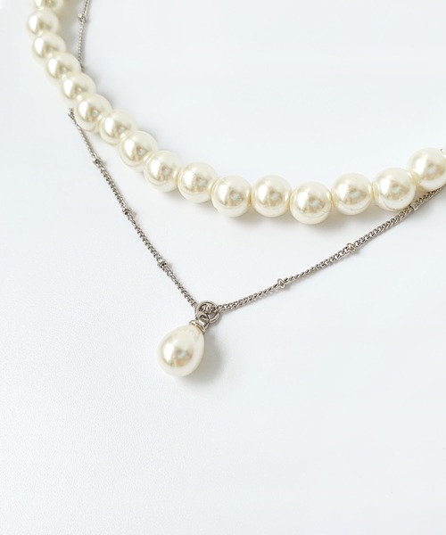 程よいサイズ感のパールネックレスと、華奢なチェーンの一粒パールネックレス2つのネックレスがセットになったお得なアイテム♪別々に着用可能な3way仕様で、その日の気分やスタイリングに合わせて使い分けできるのが嬉しいポイント。それぞれ単体での着用はもちろん!2連レイヤードでデコルテラインをより一層華やかな印象に…♡結婚式などのパーティーシーンにもオススメですが、カジュアルスタイルに合わせるのが今っぽく映えるアイテムです。ユニセックスとして、男性の方の着用もオススメです◎【変色を防ぐための注意点】- アクセサリーのサビや黒ずみ、変色を防ぐには 汗や水などの水濡れに気を付けることが大切です。- ご使用後は柔らかい布で汚れや水分を拭き取る ようにしてください。- 空気との接触を減らすため未着用時には ジッパーバッグなどに保管してください。