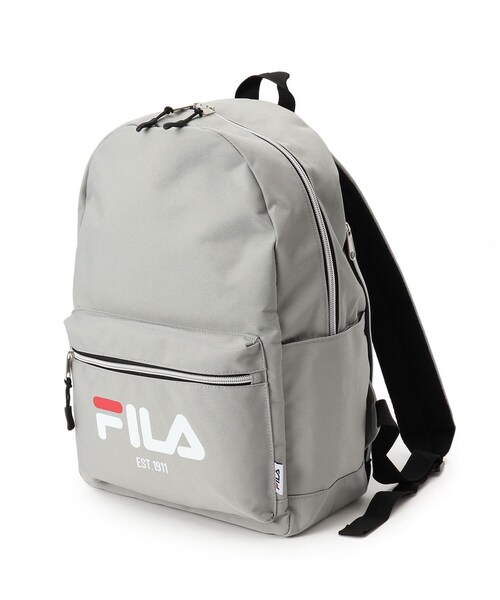 DRESKIP/FILA(フィラ)バッグ【デザイン】FILAのロゴをプリントしただけのシンプルなデザインに加え、デイリーユースしやすいサイズ感が魅力のリュック。背負ったままメイン収納にアクセスできる、背面ファスナーを完備した使い勝手の良さもポイントに。生地には撥水加工が施されていますので、急な雨も安心です。(防水ではありません)※ポケット数:内側×1 外側×3※この製品は撥水加工を施した素材を使用しています。この効果は永久的ではありません。店舗へのお問い合わせ商品番号:F97-02926●製品寸法:00:高さ40cm 幅(上部)33cm 幅(下部)27cm マチ13cm 持ち手上がり3.5cm ショルダー対応サイズ45~87.5cm備考:重量:約380g