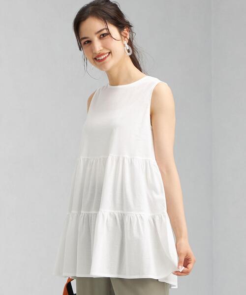 ◆引き続き大注目のティアードデザインのカットソーが新登場◆ たっぷりのボリューム感がコーディネートの主役になる事間違いなしの一着。 スカートやワンピースで多くあるティアードですが、待望のカットソートップスをデザイン致しました。 コットン素材なので肌触りも快適♪ 着回しに便利なホワイト・ブラックカラーに加え、大人の女性に似合うパキッとしたピンクカラーをご用意致しました。 かごバッグやフラットサンダルなど夏小物と相性抜群の一押しアイテム。 すっきりとしたパンツと合わせてメリハリのあるシルエットをお楽しみください! 【POINT】 ・女性らしいティアードデザイン ・暑い季節に着映えするAラインシルエット ・着心地が快適なカットソー素材 ---------------------------------- 透け感:ややあり 光沢感:なし 生地の伸び:ややあり ケア方法:手洗い可・ドライクリーニング 裏地:なし ---------------------------------- ▼お気に入り登録のおすすめ▼ 気になる商品は「お気に入り」登録がおすすめ! お気に入り登録商品は、マイページにて現在の価格情報や在庫状況の確認が可能です。 お買い物リストの管理に♪是非ご利用下さい。 #キレイメ#カジュアル#デイリー#ミドル#ロング#無地#フェミニン#クルー#U#ネック#丸首#ノースリーブ#袖なし 店舗へお問い合わせの際は、全国のgreen label relaxing各店舗まで下記の品名/品番をお申し付け下さい。 品名:FFC OG ティアード NS 品番:3617-226-2823