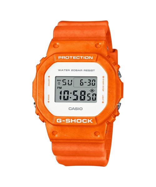 ※生産完了モデルです、在庫限りとなる場合があります。 ※人気商品につき、おひとり様1点とさせていただきます。 タフネスを追求し進化を続けるG-SHOCKの、雄大な海が作りだす様々な姿を表現したカラーモデルです。 ベースモデルは三つ目のデザインで親しまれているDW-6900と、 初代G-SHOCKのDNAを色濃く継承するスクエアフォルムのDW-5600。 海面に映る夕日やビッグウェーブ、漆黒の夜の海など時間によって姿を変える夏の海の情景をモチーフに3色のカラーをラインアップ。 ベゼルとバンドにはそれぞれオーシャンウェーブをイメージした模様を混色樹脂成形技術で再現しました。 海をはじめとした夏のストリートシーン、ファッションシーンに映えるG-SHOCKです。 ・ ケース・ベゼル材質: 樹脂 ・ 樹脂バンド ・ 耐衝撃構造(ショックレジスト) ・ 無機ガラス ・ 20気圧防水 ・ EL:ブルーグリーン ・ ケースサイズ(縦×横×厚さ): 48.9×42.8×13.4mm ・ 質量:53g ※混色樹脂成型技術はすべての製品で色や柄に違いが出るのが特徴です。掲載商品の色調は実物と異なります。 付属品:保管箱 【メーカー保証について】 保証期間は、お客様のお買い上げ日より1年間です。 保証対象は時計本体のみで電池やバンドなどの消耗品は対象外となります。 詳しくは、メーカーホームページもしくは取扱説明書(保証書付き)をご確認ください JANコード:4549526304286
