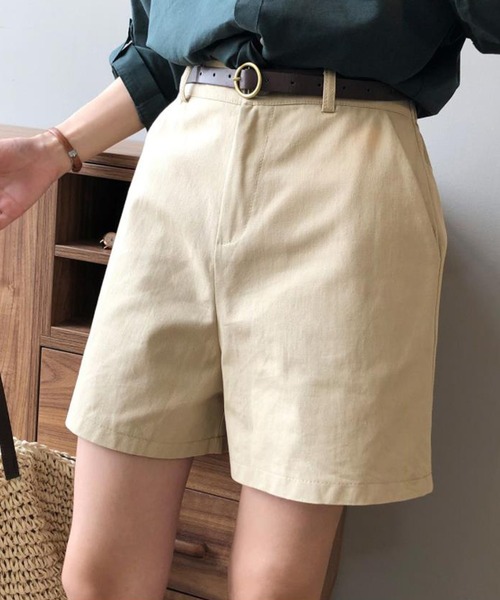 美脚に魅せてくれる大人のハーフパンツ■デザインさりげなく広がるシルエットが脚をすっきりと見せてくれるハーフパンツ。きちんと感のあるルックスながらも、後ろゴム仕様で安心感のある穿き心地なのも◎シンプルなデザインと落ち着いたカラーで、カジュアルにも綺麗めにもスタイリング出来るアイテムです。ベルト付きも嬉しいポイント。■素材さらっとした気持ちのいい素材。履き心地抜群で楽な生地感です。■スタイリングTシャツやルーズシャツ、ジャケット合わせはもちろん、スウェットやトレーナーと合わせて大人っぽいキレイめストリートスタイルを楽しむのもGOOD。短すぎない丈感なので大人女子な印象に。足元は抜け感の出るスニーカーやサンダルが◎【モデル着用サイズ】全色モデル身長:162cm、着用サイズ:M