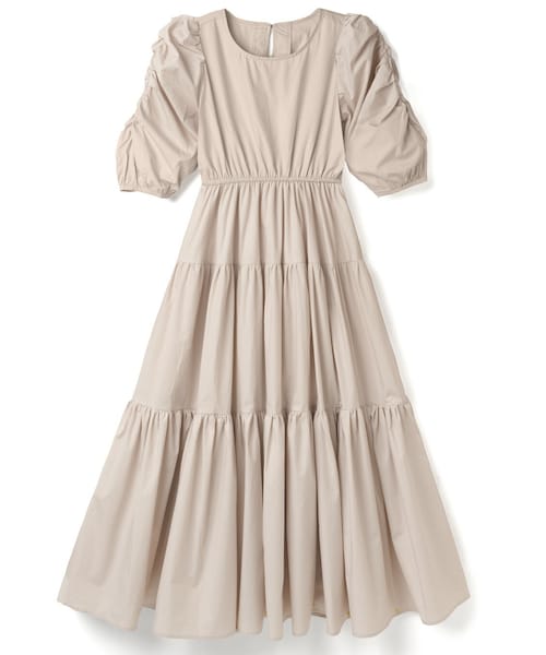 ティアードデザインが歩くたびに軽やかになびく。 たっぷりとしたパワショルが最大の魅力。 ロング丈で大人な上品さを後押し。 ★ウエストゴム入りです。 ★スカート部分のみ裏地付きです