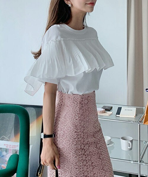 フロントバストから袖にかけてプリーツで ポイントを入れたTシャツです。 ※WEARに記載してある金額と、DHOLIC通販サイトに記載してある金額にシステム都合上、稀に誤差が生じます。正しい金額はDHOLIC通販サイトに記載された金額です。