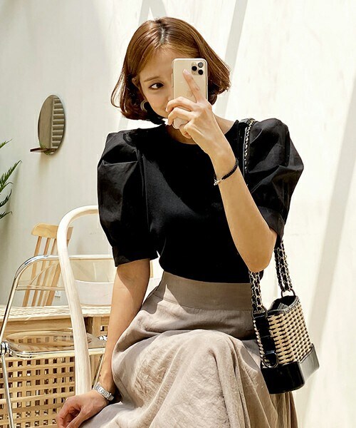 パフスリーブがポイントのブラウス。 ※WEARに記載してある金額と、DHOLIC通販サイトに記載してある金額にシステム都合上、稀に誤差が生じます。正しい金額はDHOLIC通販サイトに記載された金額です。