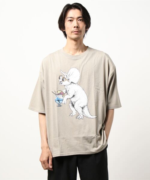 思わず二度見してしまうような、外遊びを楽しんでいるリアルタッチの恐竜たちがユニークなBIGTシャツ。はっきりとしたプリントですが、恐竜自体はモノクロで小物のみカラーを入れているので、かわいくなり過ぎない丁度いいプリントTシャツになっています。Tシャツ自体の色はシンプルなカラーとくすみがかった落ち着いたカラーになっているので合わせやすさも◎また、着替えが多くなる暑い時期でも安心の型崩れしにくい天竺編みなのでたくさん着ていただけます!一枚で着ても、コーディネートが寂しくならないの薄着の季節にもってこいの一枚です。