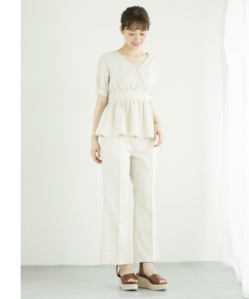 リネンフレアーパンツ■ White Collection by WHITE JOOLA ■さらりとした肌りのリネン生地を使用した、フレアーパンツです。ウエストはフロントファスナー&ホック、背中ゴムシャーリング使い。サイドポケット付き。ややハイウエストなデザインで脚長効果抜群。同素材のリネンブラウスを合わせればセットアップでの着こなしも楽しめます。パンツ弊社品番 700054===========================生地の厚さ:★☆☆☆☆ 透け感:なし裏地:あり(アイボリーのみ)伸縮性:なし光沢感:なし生地感 :さらりとした肌触りケア方法:手洗い可推奨着用シーズン:春~初秋===========================【WhiteCollection】大人の休日にマストな、ヒトワザ効いたトレンドアイテムを提案。デザインとプライスのバランスが魅力です。【商品のお気に入り登録】完売カラーの再入荷通知やラスト1点の通知、プライスダウンの通知も受け取ることができます。【ブランドのお気に入り登録】新商品や再入荷など、ブランドの情報をいち早くお知らせします。ぜひご登録ください◎※室外の光や照明の当たり具合で、実際の商品の色味とカラー別画像の色味に若干の違いが発生する場合がございます。※ご注文いただいた予約商品のお届け時期の確認は、注文履歴ページより行えます。