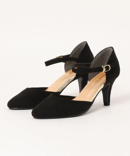 SUNNY ROOM SELECTIONアーモンドトゥでフェミニンな曲線を描くフォルム、足首のストラップで安定感も◎オフィスにも、普段使いにもOKなパンプスです。【素材・カラー】◎スウェード調素材◎ブラック単色