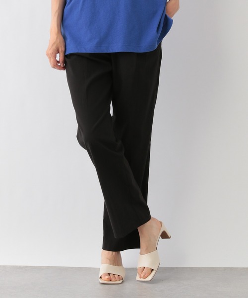 美脚シルエットが叶うスリットパンツ カジュアルに穿けるリネンのデザインパンツです。細みのラインをベースに裾ににスリットを取り入れ、ややフレアシルエットに仕上げました。センタープレスも入っているので脚がすっきり見えるのがポイント◎。麻混素材で軽い肌当たりで暑い季節にぴったりです。ストレッチも効いているので、アクティブなお出かけにもおすすめです!
