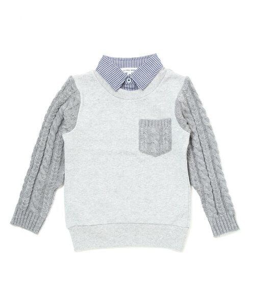 ★一枚でさまになるデザイントップス★ニットの部分使いが印象的なスウェットをシャツの上に重ねたようなフェイクレイヤードデザインで一枚でスタイルが完成。袖部分のニットは毛糸一本一本編みこまれているので伸縮性がありとても柔らかいのが特長です。袖とポケットのケーブル編みで雰囲気があり大人っぽく仕上がっています。店舗へのお問い合わせは下記の商品名と品番をお伝えください。商品名:FLソデケーブルニットLS品番:553484