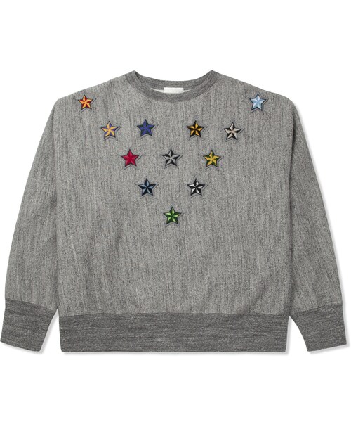 FACETASM’s name is derived from “facet,” a word chosen by Japanese fashion designer Hiromichi Ochiai to represent a variety of perspectives. His creations are edgy and feature a great variety of prints, materials and colors, resulting in collections of true Tokyo streetwear. 100% cotton crewneck sweatshirt with long sleeves, embroidered star pattern and banded collar, cuffs and hem. Available now in heather grey.
