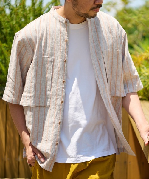 ■デザイン リネン素材が軽やかな印象のバンドカラーシャツです。 ゆったりとしたシルエットは1枚で様になります。 バンドカラーで夏らしい、抜け感のある着こなしに。 これからの季節に一役買ってくれるおすすめシャツです。 ■素材リネンを使用した夏仕様の素材です。 レーヨン特有の軽く柔らかい質感で着心地も良く、 暑い夏でもべた付かず、常にサラリとした肌触りをキープします。 ■スタイリング シンプルに1枚着でデニムやスラックス、チノパンツなど様々なアイテムとスタイリングしていただけます。 涼し気な素材なので、ショーツと合わせた夏らしいスタイリングもおすすめです。 気になった商品はお気に入り登録がオススメです! 入荷情報や、クーポン情報が通知されるようになります。 ※画像の商品はサンプルです。 実際の商品と仕様、加工、サイズ、素材が若干異なる場合がございます。