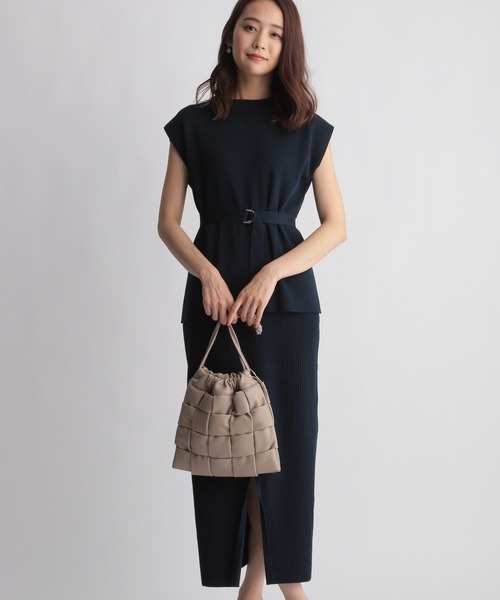 スタイル即完成!ニット×タイトスカートのセットアイテム。 落ち着きのあるIラインが、すっきりと洗練された印象です。 トップスはショルダーをカバーするフレンチスリーブ。 ウエストにはベルトがセットでき、ウエストマークすればシルエットチェンジも自在です。 ボディラインを拾いすぎないリブで、大人の女性に嬉しい一枚。 スカートにはスリットをいれているので、足さばきも◎ 普段使いからちょっとした集まりまで、幅広いシーンにマッチ。 【素材】 トップスソウバリ、スカート裏ソウバリ×リブ ハイツイストの綿素材で、夏らしいサラッとした肌触りが特徴 ストレッチあり 透け感ややあり 裏地なし ファスナーなし 【お手入れ方法】 手洗い可 ーーーーーーーーーーーーーーーーーーーーーーー ▼ 商品のお気に入り登録 ▼ 完売カラーの再入荷通知や、ラスト1点の通知、 セールの通知も受け取ることができます。 ▼ ブランドのお気に入り登録 ▼ 新商品や再入荷など、 ブランドのお得な情報をいち早くお知らせ! ぜひご登録ください! ※屋内外の光や照明の当たり具合で、実際の商品の色味とカラー別画像の色味に違いが発生する場合がございます。 色味はスタジオ撮影の詳細画像にてご確認ください。 ※生地の寄り画像が最も実物に近い色味となります。