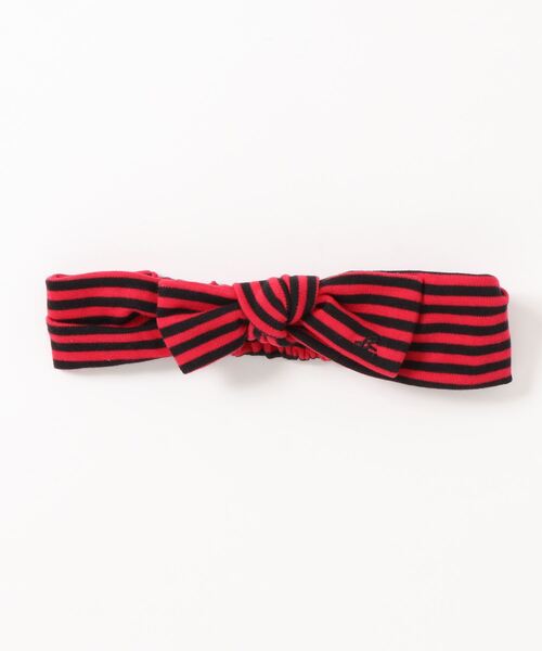 ボーダー柄のリボンヘアバンド。伸縮性があり柔らかい生地のコットン素材を使用。リボン部分にはb.刺繍が入り、さり気ないポイントに。同素材のお洋服とあわせたコーディネートもおすすめ。