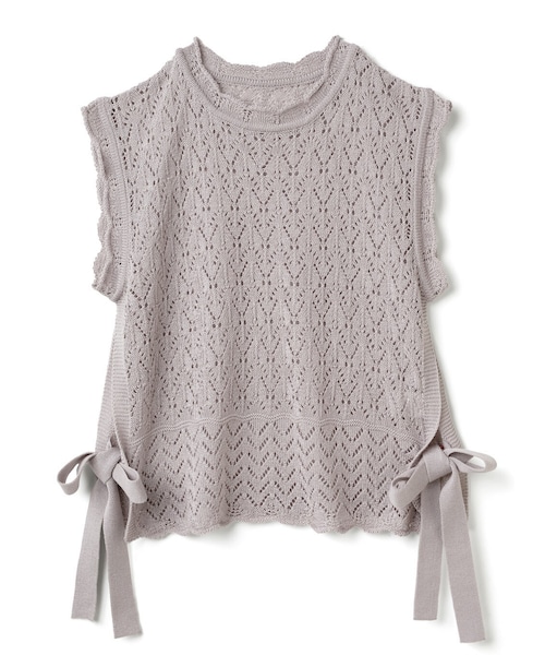 少しハイネックになって大人っぽい雰囲気を漂わせる。 スカラップデザインがスイートなワンポイントに。 レイヤードコーデにピッタリな透かし編みとサイドのスリット&リボンにも注目。 ★伸縮性があります。 ★素材の特性上、カラー・形・サイズが、写真・サイズ表示と多少異なる場合があります。 ★透かし編みデザインの為、インにはキャミソールなどを着用ください。
