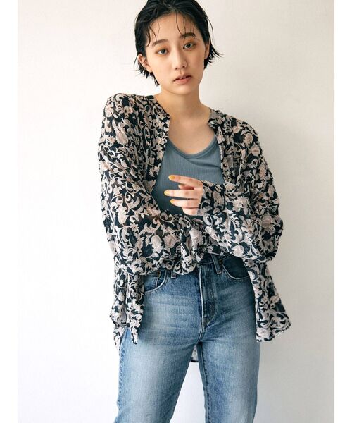 シアーのプリント生地を使用したノーカラーデザインのシャツ ■商品のお気に入り登録 クーポンやタイムセール、再入荷通知やラスト1点などお得な情報を受け取ることができます。 ご登録をお忘れなく◎ ■デザイン シアーのプリント生地を使用したノーカラーデザインのシャツ。 たっぷりとしたシルエットで女性らしい印象も。 プリント生地はジャカード素材で一癖ある素材感もポイントに。 ■サイズ感 程よくルーズなサイズ感でラフに着て頂ける設定に。 丈感はヒップに少しかかる丈感で安心丈です。 ■スタイリング シアー感のある素材なのでインナーにはカラーのタンクトップでレイヤードをお楽しみいただけます。 ボトムはレザーパンツでマニッシュなムードに。 ・・・・・・・・・・・・・・・・・・・・・・ 透け感:あり 裏地:なし 伸縮性:なし 光沢感:なし 生地の厚さ:薄手 ・・・・・・・・・・・・・・・・・・・・・・