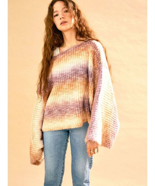 1枚で「主役級」 グラデーションのカラーがポイントのルーズニット ■商品のお気に入り登録 クーポンやタイムセール、再入荷通知やラスト1点などお得な情報を受け取ることができます。 ご登録をお忘れなく◎ ■デザイン グラデーションのカラーがポイントのルーズニット。 1本の糸がグラデーションになっていることで再現できる編地は1つ1つ異なる見え感に。 真四角のようなシルエットで1枚でお洒落見えするアイテムです。 ■サイズ感 長方形のシルエットが特徴的に丈感は短めに。 ハイウエストボトムと合わせやすい設定。 スリーブは太くかなりルーズな印象です。 ネック周りはボートネックで広めに開いたデザインです。 ■スタイリング タンクトップとレヤードして首回りは華奢見えするスタイリングがオススメ。 ボトムはカジュアルにデニムスタイリングやコットンスカートでレディライクなスタイリングなどがマッチします。 秋服に1枚で主役に、冬にはインナーで差し色に。 ・・・・・・・・・・・・・・・・・・・・・・ 透け感:なし 裏地:なし 伸縮性:あり 光沢感:なし 生地の厚さ:普通 ・・・・・・・・・・・・・・・・・・・・・・