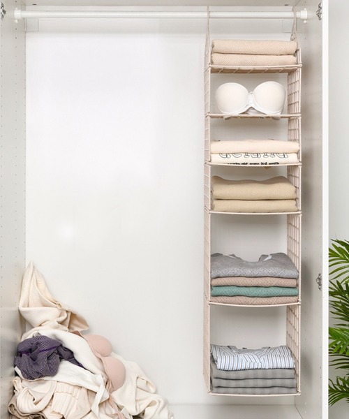 大切な衣類を美しいままキープ! 上から吊るすことで一段一段に重力がかからず、シワが付きやすいシャツやセーター、型崩れが気になる帽子などを美しい形のままキープすることが出来ます。 吊るして収納型崩れ防止!ポケット付きだから小物もまとまる 吊り下げ収納