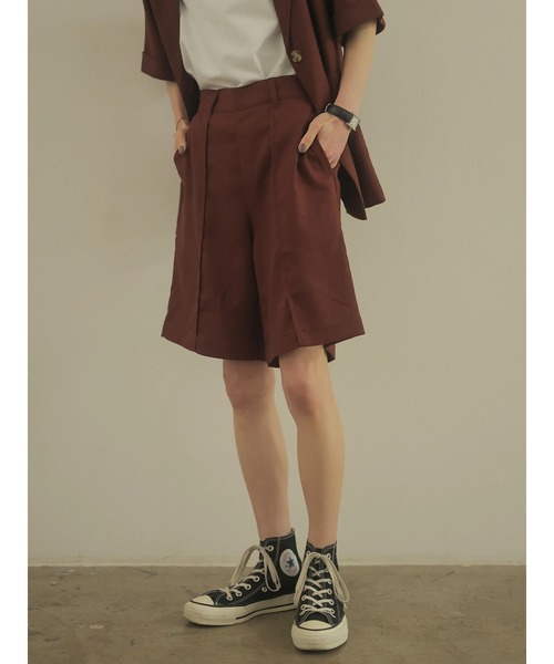 小柄女性がバランスよく着こなせるハーフパンツです。 丈感はもちろん、センターシームのデザインとシルエットにこだわりました。 是非、大人の小柄女性に着ていただきたい一枚。 裏地はついていないですが透ける心配なく、リネン混のさらりとした素材で快適な着心地です。 ウエスト部分も後ろゴム仕様なのでストレスフリー! 麻とレーヨンのナチュラルな生地の風合いをお楽しみください。 パンプスと合わせたきれいめスタイルからカジュアルなスニーカー合わせもオススメです。 同シリーズのジャケット(NG15L0Y0300リネンブレンドハーフスリーブジャケット)とセットアップで着用いただけます。 ● rem closet (レム クローゼット) 松井里穂がディレクターを務める153㎝以下の小柄女性に向けたカジュアルモードブランドです。 着たいのにサイズが大きすぎる…いつもサイズ直しが必要… そんな小柄な方に既製品でも着られるサイズ感をお届けしたいという想いから、 ready-made(既製品)= rem closetを立ち上げました。 小柄の方向けの今までにないサイズ感と世界観を発信します。 ▼ 商品のお気に入り登録がおすすめです ▼ 商品ページ内のハートマークをクリック。 完売時の再入荷や、最後の1点の通知、コーディネート画像がアップされたとき、お得なお値下げの際の通知を受ける事ができます。