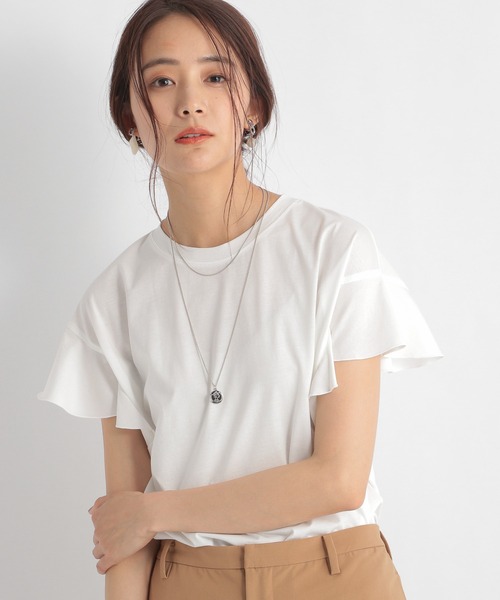 裾フリルのワンポイントがフェミニンなデザインカットソー。 さりげない存在感で、1枚で着ても映えるアイテムです。 ドロップショルダーでフリルが斜めに入っているので、肩が張らずスッキリして見えるのがポイント。 メロウで仕上げた袖口は夏にぴったりな軽やかな印象に。 スカート、パンツと様々なアイテムと着まわせる、万能な一枚。 【素材】 シルケット天竺 ツルっとした表面がキレイなシルケット素材で、シルクのような光沢感があるので布帛見えするのが特徴です。 ストレッチあり 透け感ややあり 【お手入れ方法】 手洗い可/ドライクリーニング可 (※移染注意) ーーーーーーーーーーーーーーーーーーーーーーー ▼ 商品のお気に入り登録 ▼ 完売カラーの再入荷通知や、ラスト1点の通知、 セールの通知も受け取ることができます。 ▼ ブランドのお気に入り登録 ▼ 新商品や再入荷など、 ブランドのお得な情報をいち早くお知らせ! ぜひご登録ください! ※屋内外の光や照明の当たり具合で、実際の商品の色味とカラー別画像の色味に違いが発生する場合がございます。 色味はスタジオ撮影の詳細画像にてご確認ください。 ※生地の寄り画像が最も実物に近い色味となります。