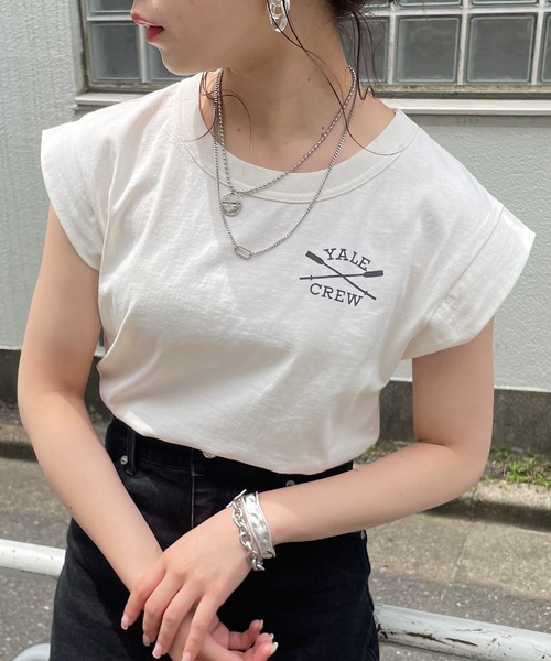 YALEのロゴが前後に入った女性らしく着れるTシャツです。定番で使えるカレッジロゴアイテムはシンプルになりがちな夏のコーディネートに華やかさをもたせてくれます。袖口はフレンチスリーブになっており、腕周りを華奢見えに導きます。フロントのさりげないロゴだけでなくバックロゴもポイントの1枚です。【YALE University】コネティカット州ニュー・ヘブンにある、アメリカで3番目に古い大学。東部の名門校アイビー・リーグの一校で、ハーバード大学と並んで入学の厳しいエリート校とされている。▼お気に入り登録のおすすめ【気になるアイテムを登録】ハートをクリックしてお気に入りに登録すると完売カラーの再入荷やラスト1点の通知、セールの通知を受けとることができます。【ブランドを登録】新商品や再入荷、セール通知など、いち早くブランドの情報を受けとることができます。是非ご利用頂き、お買い物をお楽しみ下さい。▼商品について・サイト上のカラー名と、お届け商品に記載されているカラー名が異なる場合がございます。・商品の色味は、撮影場所や光のあたり具合などにより色味が違って見える場合がございます 。また、お客様のお使いのPCのモニター環境などにより色味が違って見える場合がございます。予めご了承の上ご注文下さい。▼返品・キャンセルについて・着用、洗濯後の返品、交換は致かねます。・商品到着後、着用前に商品を確認して頂きますようお願い致します。