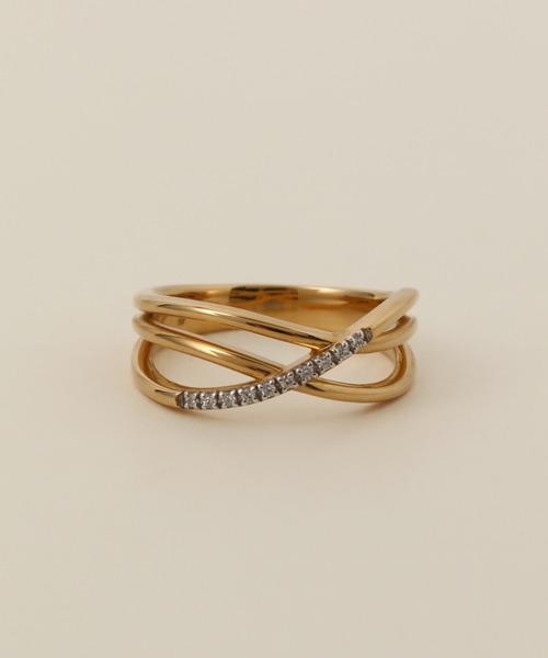 -POINT-美しい水の流れをイメージした、コンビネーションカラーが特徴のジュエリー。さっと身に着けるだけで3本のリングを重ね着けしているように見えるので、これひとつで女性らしい大人のお手元を演出。流れるようなラインにキュービックジルコニアをセッティングし、ラグジュアリーで身近に感じていただけるリングに仕上げました。【Reve/レーヴ】ナチュラルに自由な発想で気負いすることなく着けこなしができ 、大人のシルエットに美しく映えるジュエリー。