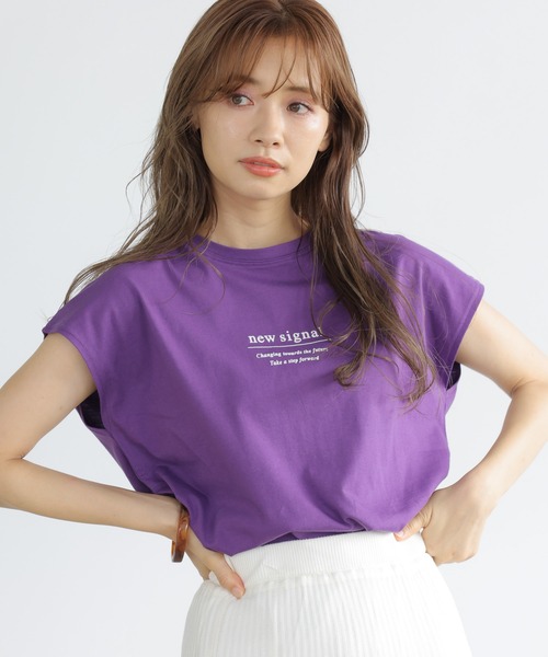 暑い日もノンストレスで着用できる♪ ■point ・綿100%でさらっとした気持ち良い着心地 ・シンプルになりすぎないフロッキーロゴを採用 ・定番カラー2色と、ポイントになるパープルの全3色 ■detail フレンチ袖なので、気になる肩回りや二の腕をさりげなくカバーしてくれるデザイン。 フロッキ―ロゴで立体感がでるので、プリントロゴよりも大人っぽい雰囲気で着こなせます。 長め丈なので、パンツ合わせでもヒップを隠してくれるのがうれしいポイント♪ ■styling ワンポイントロゴなので、柄ボトムやデザイン性の高いボトムとも相性◎ 裾をINすることでウエストがすっきり見えて、スタイルアップが叶います。 スカート合わせはもちろん、シアーやレースパンツ合わせも今年らしくておすすめです。 【INFORMATION】 ■商品のお気に入り登録 完売していても再入荷時に再入荷通知を受け取ることができますので、是非ご登録ください! ■ブランドのお気に入り登録 新商品や再入荷などの情報を受け取ることができますので、是非ご登録ください! ※撮影環境により、光の当たり具合で色味が違って見える場合があります。あらかじめご了承ください。