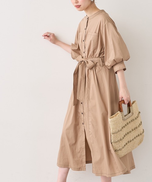 【2021SS natural couture】 大人上品なシャツワンピースがWEB限定で登場■Designシャツ襟が苦手という方にもスッキリと着て頂けるノーカラーデザイン。腕を華奢見せしてくれる程良いボリューム袖は、清楚で上品な丈感に仕上げました。動くたびに揺れる自然なAラインシルエットと、ウエストの位置をやや高めにデザインしたことで、スタイルアップ効果も期待出来る、デザイナーのこだわりが詰まった今季おすすめのシャツワンピースです。■Styling 1枚でさらっと着るだけで決まるデザイン。バングルやアクセサリーで変化を楽しんだり、足もとは雑材のミュールやスクエアパンプス、クリアサンダルなど、旬なアイテムと合わせるのもおすすめです。■Fabric 本体にはコットン素材を使用し、季節を限定せずロングシーズン着用して頂きやすい1着に仕立てました。裏地はさらっとしたポリエステル素材で、ストレスフリーな着心地もポイント。普段使いからお出掛け着まで幅広いシーンで活躍すること間違いなしの1着です。===============透け感:ほとんどなし裏地:あり伸縮性:なし光沢感:なし生地感 :身体馴染みの良い生地感===============【お気に入り登録でお得な情報がいっぱい】・「商品のお気に入り登録」で再入荷通知や、ラスト1点の通知、セール通知をいち早く受け取ることができます。・「ブランドのお気に入り登録」で新商品や再入荷など、お得な情報を受け取ることができます!