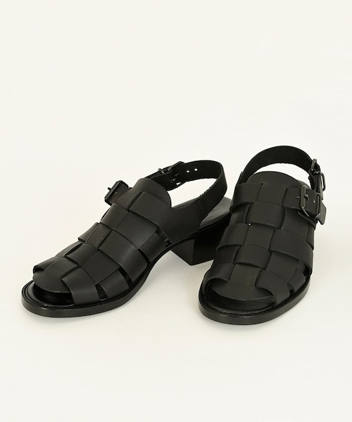 DETAILシューズのようにしっかりとしたホールド感とサンダルの快適さを兼ね備えたサンダルです。染料仕上げによる自然な風合いと厚手でハリコシのあるレザーを使用し、裏面にスエードを貼り合わせ肌触りを柔らかくしています。高さ5.5cmのヒールはフロントから自然に傾斜し、接地面積を広くして安定性を高めています。ハーフソールとヒールに合成底を貼り、滑りにくく耐久性を高めています。