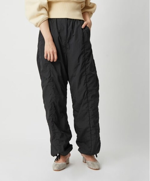 縦に入ったシャーリングデザインが特徴的なパンツ。裾は絞れるデザインでジョガーパンツのようなシルエットで着用できます。シャカシャカとした軽い素材が夏にぴったりです。【Brand】AMOMENTO(アモーメント)韓国のセレクトショップ『SHOP AMOMNETO』 のオリジナルブランド。スペイン語で“一瞬”という意味の【AMOMNETO】は、服を着た時はじめて完成する【一瞬】を意味している。いつ着ても良く、時が経っても変わらぬ価値があることを大切に作られたブランドです。誰かが着