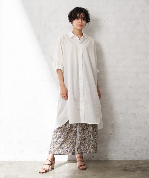 ほど良いハリと光沢感のあるペーパー加工素材で仕立てたロングシャツ。袖口にギャザーをよせたボリュームスリーブが今年らしいデザイン◎ゆったりとしたオーバーサイズシルエットでリラックスして着用出来ます。気になるボディラインもすっぽりとカバー。シンプルなデザインで着回しもしやすく、ワードローブの定番アイテムとしても重宝しそう。 ● YECCA VECCA ●(イェッカ ヴェッカ)ベーシック×モードの絶妙なバランスで、自由なマインドでファッションを楽しみたいすべての大人の女性に向けて日常をクラスアップさせる個性的なリアルクローズを提案。 ▼ 商品のお気に入り登録がおすすめです ▼商品ページ内のハートマークをクリック。完売時の再入荷や、最後の1点の通知、コーディネート画像がアップされたとき、お得なお値下げの際の通知を受ける事ができます。【お知らせ】ページでも通知が確認できます。