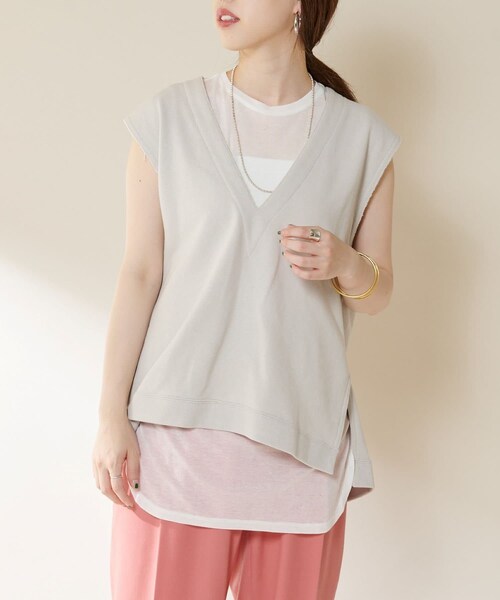 【2021 Spring&Summer Pre Order】♦肌当たり良く、着心地が良い素材感のVネックベストベストはトレンドスタイルで、着るだけでこなれ感を出すことができるアイテム。大きく開いたVネックがインナーに合わせるものを選ばず、気軽にトレンド感を演出できます。夏場はインナーにキャミソールやタンクトップなどと合わせてヘルシーに。カラーはトープとアイボリーの2色になります。・丈感も丁度良く、パンツはもちろんスカートも合わせも◎・インナーにプリントTEEなどをレイヤードしてこなれ感アップ・ゆったりとしたサイズ感でレイヤードしやすい同素材の裏毛スリットパンツ(SNZ1011602A0002)とセットアップとして着用して頂けます。<おすすめスタイリング>裏毛スリットパンツ(SNZ1011602A0002)やセンタープレスタックパンツ(SNZ1011502A0005)との合わせがおすすめです。- - - - - - - - - - - - - - -透け感:なし裏地:なし伸縮性:あり光沢感:なし生地の厚さ:普通- - - - - - - - - - - - - - --------------------------------------------------------------------------------- 【♡をクリックでお気に入り登録】完売カラーの再入荷やラスト1点の通知、セールの通知を受けとることができます。-------------------------------------------------------------------------------- ※撮影環境により、光の当たり具合で色味が違って見える場合があります。 あらかじめご了承下さい。