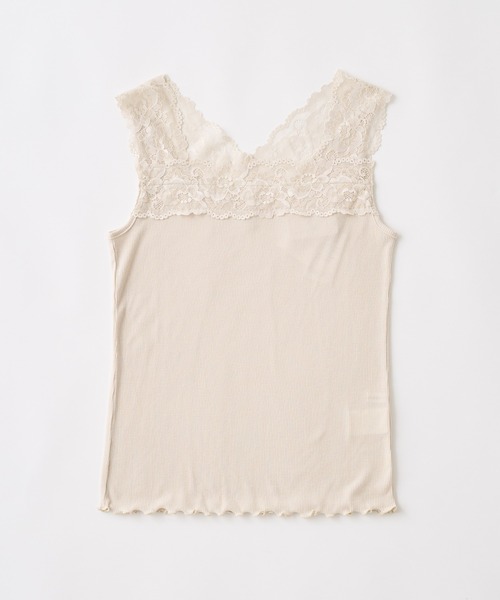 【2021SS natural couture】コーデに華やかさをプラス◎2WAY幅広レースキャミソール■Designどんなアイテムとのインナー合わせでも、自然に綺麗なレース地が馴染むよう、幅広なレース使いに仕上げました。合わせるお洋服のネックラインに対応可能な、嬉しい前後2WAY仕様。本体部分は、程よい伸縮性のあるソフトフライスを採用し、着心地の良さにもこだわりました。■Styling首回りがすっきりと開いたワンピースや、ブラウスのインナー合わせに重宝する1枚です。お好みでカーデ合わせで前開きにしてインナーを見せての着用も◎■Fabricさらっとした着心地のポリエステルとコットン素材を採用。身体に程よくフィットしながらも、ストレスフリーな着用感が特徴です。普段使いの毎日の着回しに便利なアイテムなので、色違いで持っていても活躍すること間違いなしの1品です◎================透け感:アイボリーはややあり裏地:なし伸縮性:あり光沢感:なし生地感 :柔らかな生地感================【お気に入り登録でお得な情報がいっぱい】・「商品のお気に入り登録」で再入荷通知や、ラスト1点の通知、セール通知をいち早く受け取ることができます。・「ブランドのお気に入り登録」で新商品や再入荷など、お得な情報を受け取ることができます!
